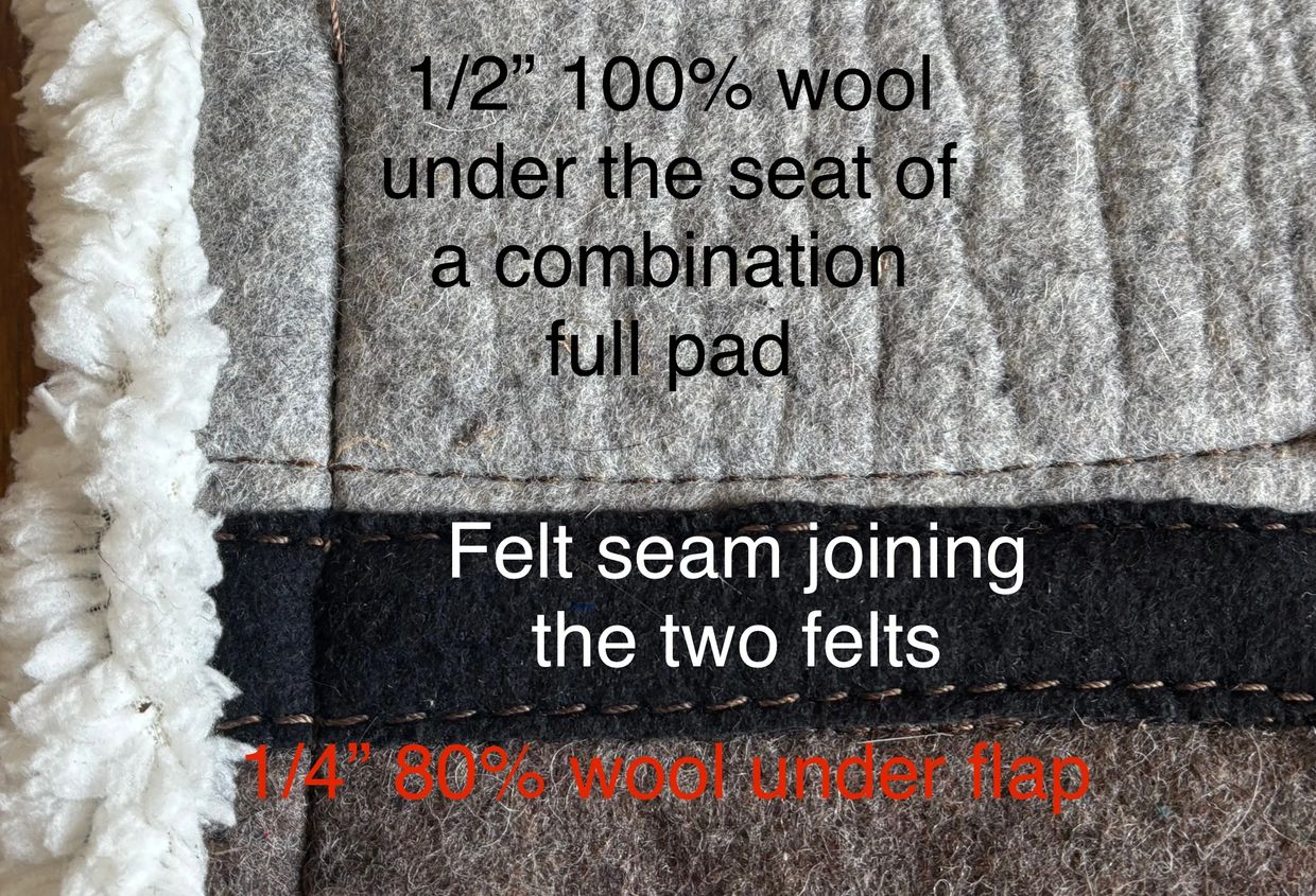 80% wool felt full traditional pad with dark brown leather $160 plus taxes